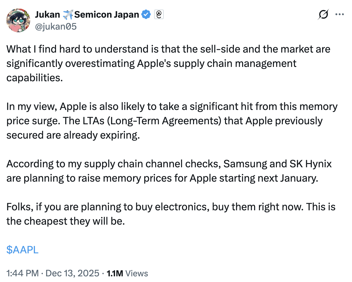 換言之,若你計畫在未來一年半內升級手機或電腦,現在的市場訊號顯示「價格可能不像過去那樣穩定」。屆時蘋果是否選擇凍漲、微調,或透過產品定位拉開價格差距,仍有待觀察,但記憶體成本這顆不定時炸彈,已開始影響消費者的換機時機與預算規畫。