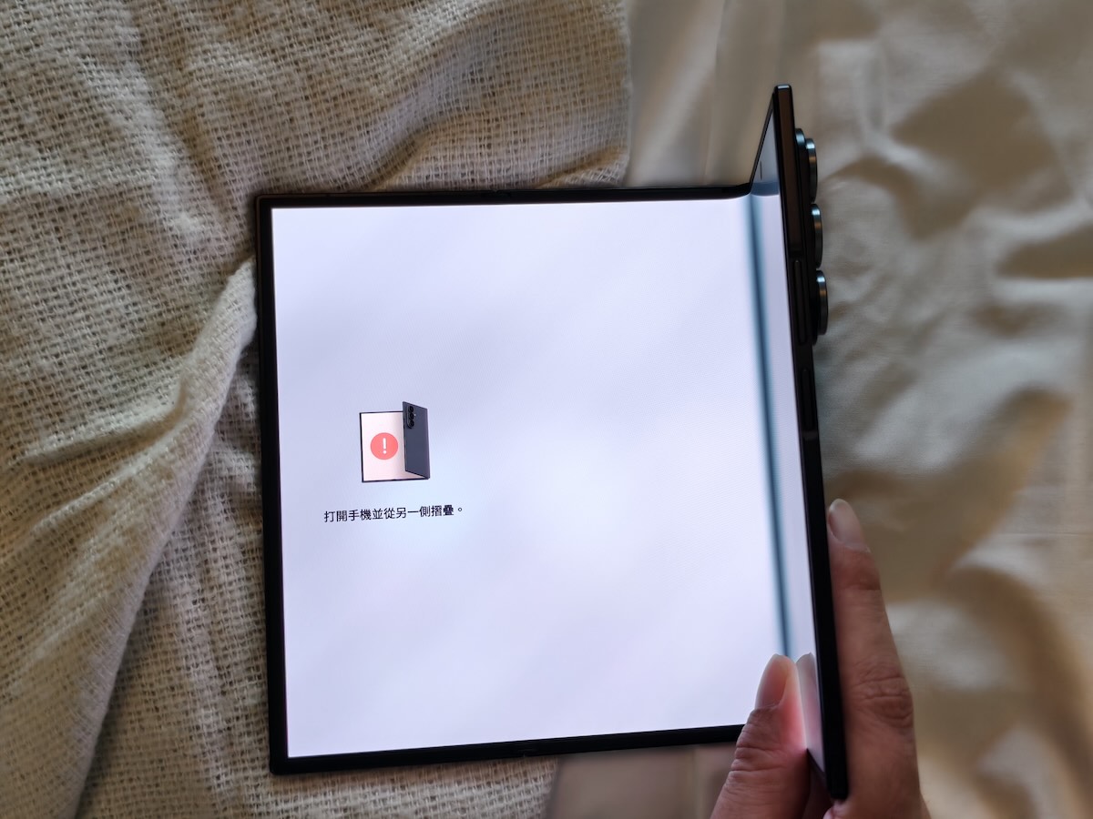 ▲ Galaxy Z TriFold 有特定的摺起方式,如果「摺錯面」機身會震動並在螢幕上提醒你摺錯了。