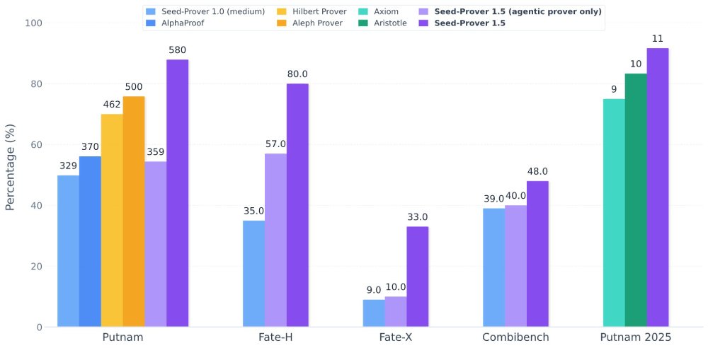 綜合中媒報導,字節跳動 Seed 團隊 24 日宣布推出新一代「形式化數學推理專用模型 Seed Prover 1.5」,透過大規模的 Agentic RL 訓練,其推理能力和推理效率宣稱取得顯著進步。