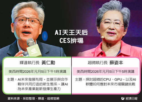 「2026 美國消費性電子展」(CES 2026)將於美西時間明年元月 6 日起登場,輝達執行長黃仁勳、超微執行長蘇姿丰都將在開展前一天發表專題演講,暢談 AI 未來發展。