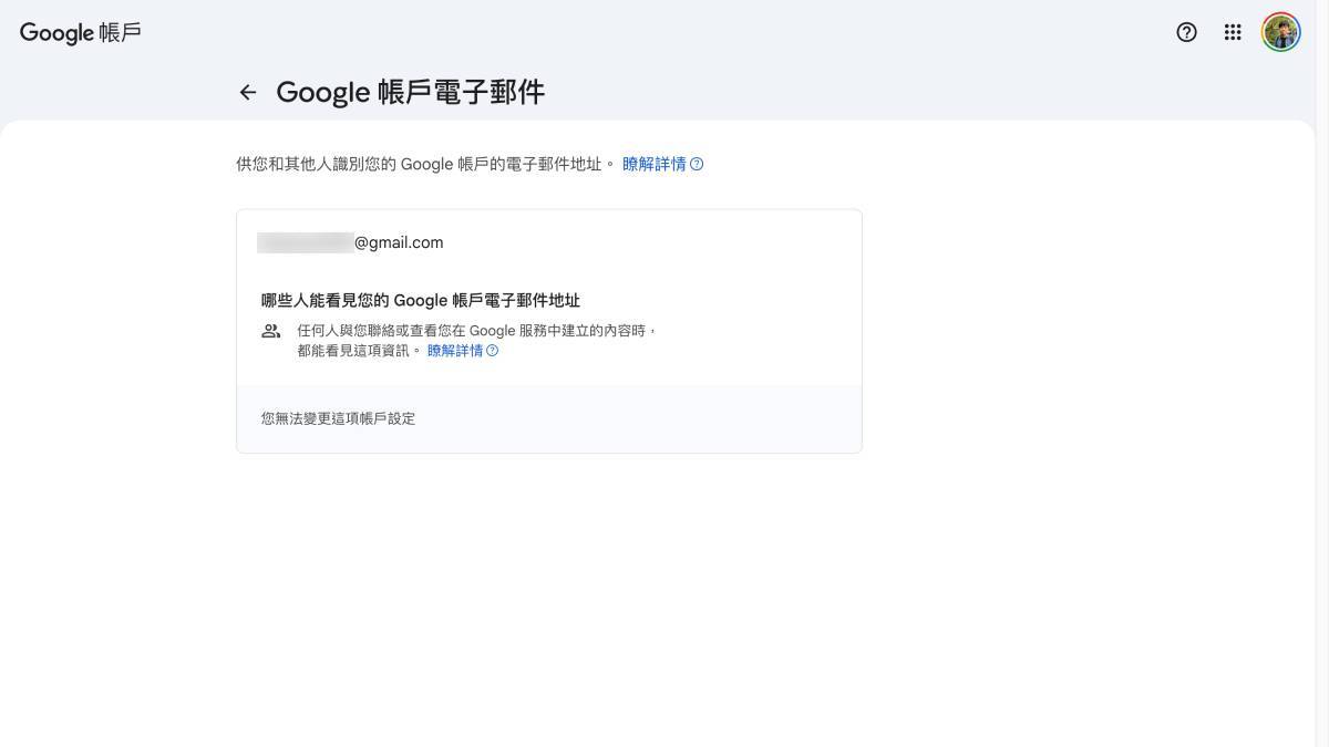 現在想要確認自己是否已能變更 Google 帳戶電子郵件地址,可在手機或電腦上前往 myaccount.google.com/google-account-email,接著點選「個人資訊」,在「電子郵件」項目下查看是否出現「變更 Google 帳戶電子郵件地址」。如果找不到這個選項,代表暫時無法變更 。
