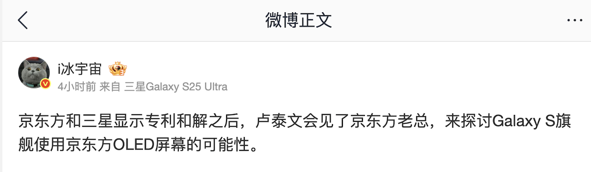 三星電子旗下的 Galaxy S 系列旗艦手機可能迎來供應鏈上的重大變化,據微博爆料帳號「i 冰宇宙」指稱,三星與中國面板廠商京東方在顯示專利上和解後,現在正探討未來 Galaxy S 旗艦手機採用京東方 OLED 面板的可能性。假若這項爆料為真,三星將京東方面板用於未來三星旗艦機型上,這將是這家一直以來自製顯示器的韓國巨頭在面板採購策略上的重要轉折。