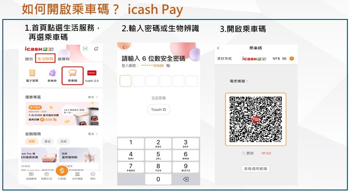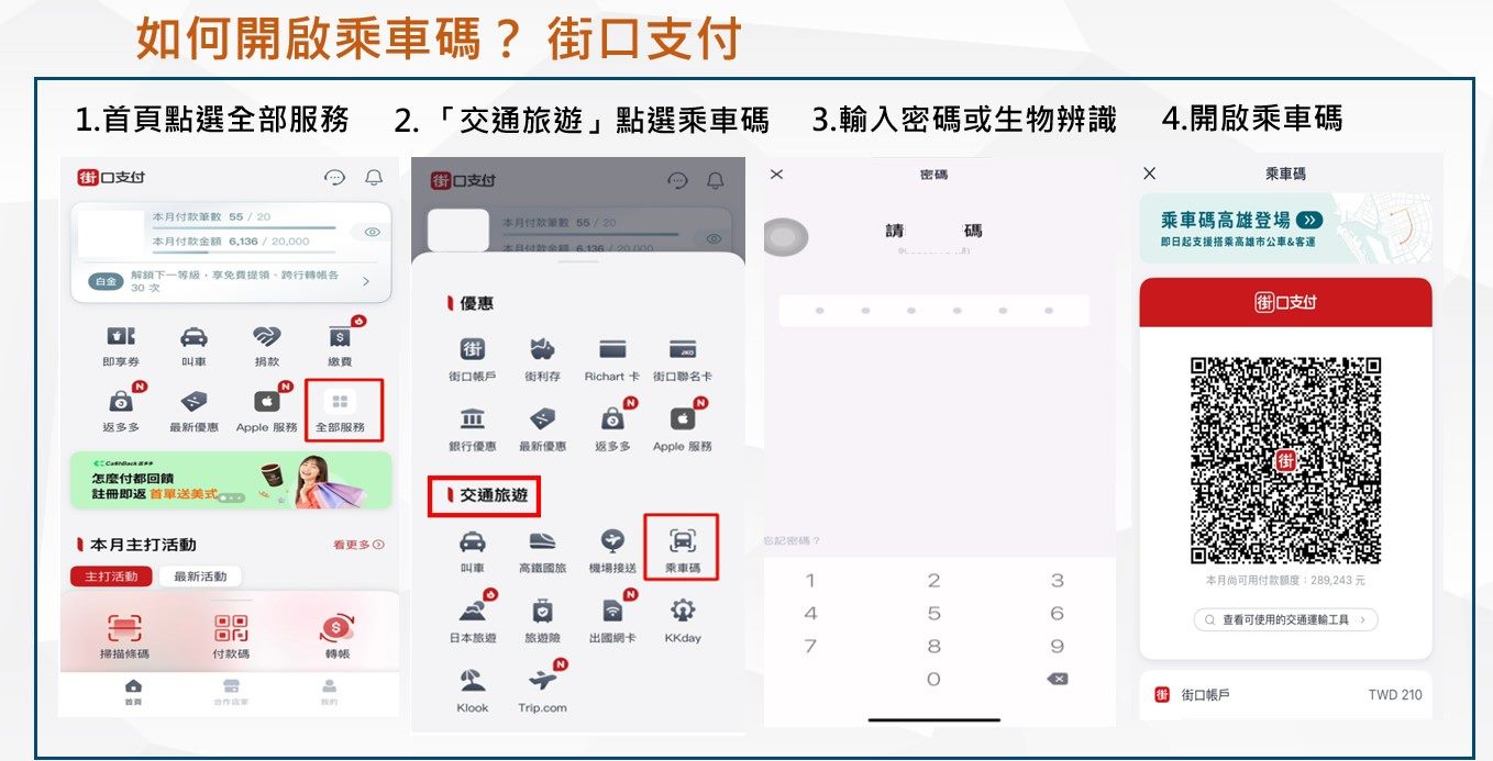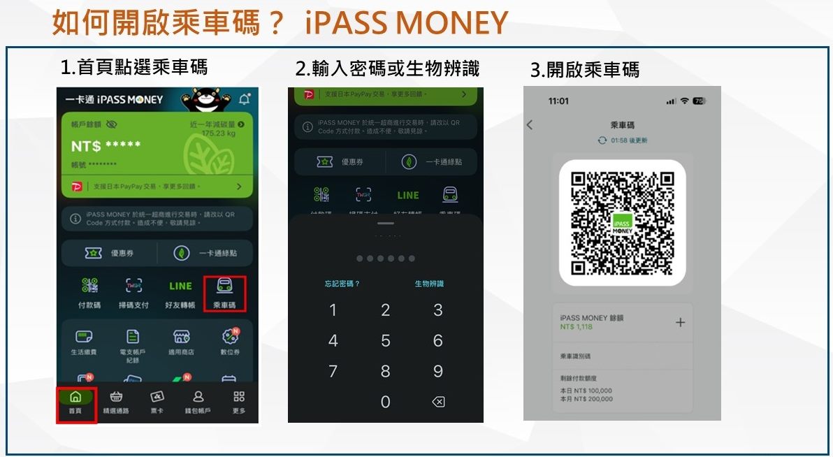 公共運輸處綜合規劃科長劉國著說明,民眾搭乘時可先開啟自己熟悉的電子支付App,點選「乘車碼」而不是付款碼,先行解鎖後再掃描,待驗票機或閘門顯示掃碼成功即代表扣款完成,不用等待手機APP畫面顯示,以免影響後續旅客上下車動線。