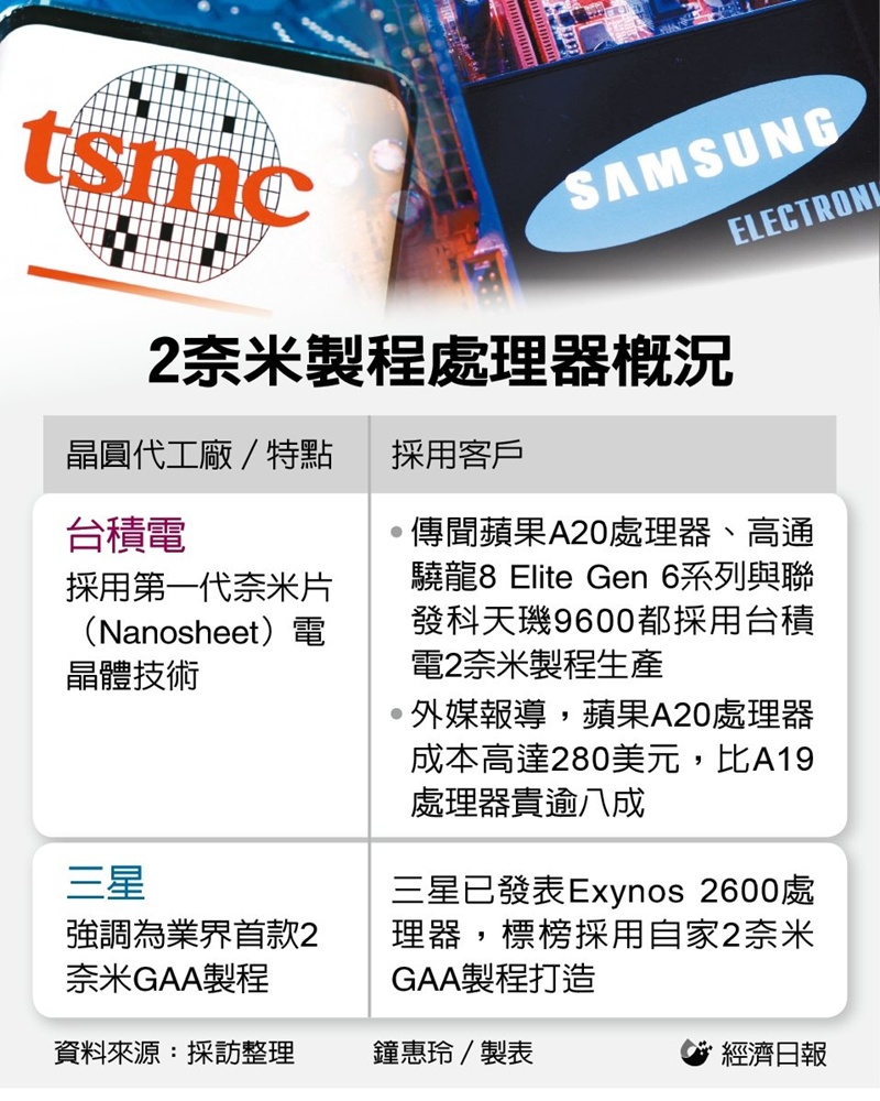 台積電、三星製程節點都推進至 2 奈米,智慧手機可望成為首批終端應用,其中,台積電通吃蘋果、高通、聯發科最新 2 奈米處理器大單,成為大贏家;三星也大秀 2 奈米肌肉,打造 Exynos 2600 處理器,用於自家手機。