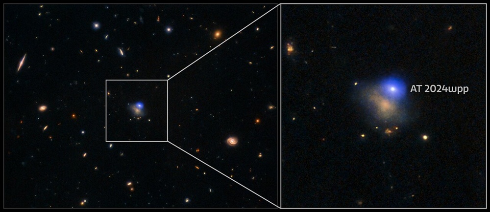 (本文由 台北天文館 授權轉載;首圖可見宿主星系右上邊緣的一個亮點,即為AT 2024wpp;該星系距離地球約 11 億光年;圖片來源:NOIRLab)