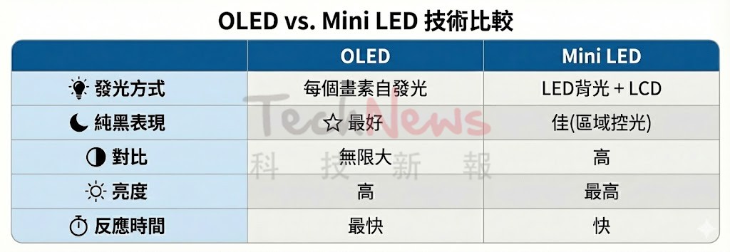 不僅在高階外接式螢幕市場占據優勢,在筆記型電腦領域,OLED 也呈現全面領先。聯想的電競機種已全面轉向 OLED,僅剩華碩與微星仍有少量機種搭載 Mini LED,其餘主流高階機種也已全面採用 OLED。