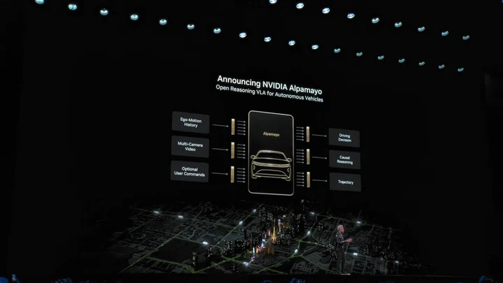 「它會告訴你接下來會做什麼,以及它為什麼會這樣決定」。示範車輛駕駛方式驚人地自然,能將極端複雜的場景,拆解為基礎常識處理。可怕的是這不是紙上談兵,黃仁勳宣布,搭載 Alpamayo 的賓士 CLA 第一季美國上線,之後登陸歐洲和亞洲市場。