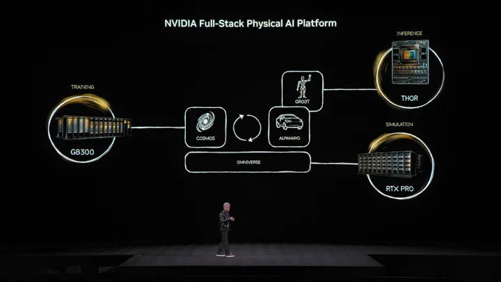 - 模擬計算機,包括 Omniverse 和 Cosmos,給 AI 虛擬訓練環境,讓它模擬同時學習物理回饋。