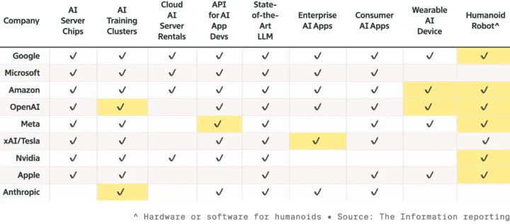 AI 不再只是雲端演算法和資料中心,而是進入機器人、自駕車、智慧設備等看得見摸得著的物理實體。OpenAI、Meta、xAI、Google、微軟等巨頭一邊補齊模型、晶片、伺服器和終端設備技術,另一邊也用機器人和可穿戴裝置等先卡好位置。