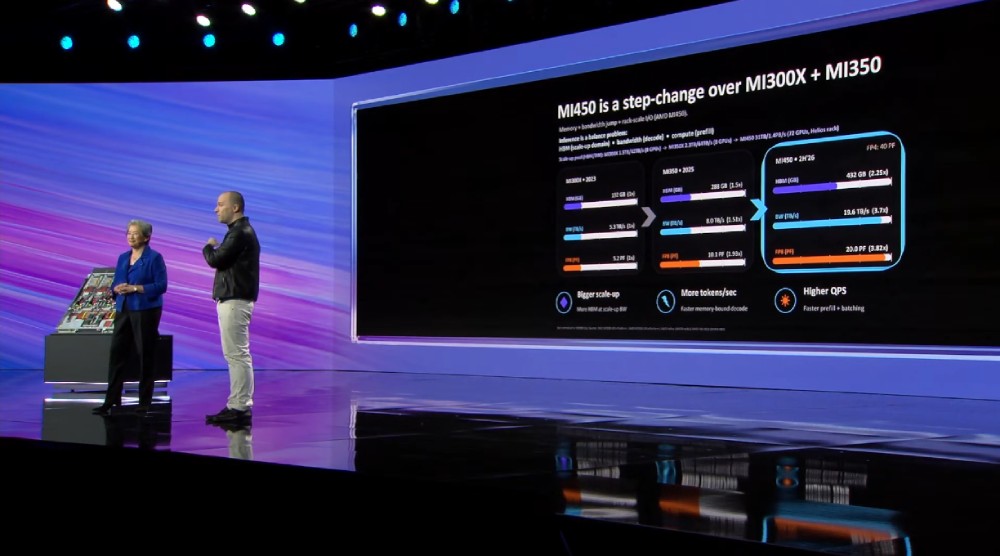 MI455X採用2nm+3nm混合製程,首次搭載HBM4,性能相比目前的MI355X提升10倍。蘇姿丰在台上舉起實體晶片時強調:「這東西美不美?」同步發布的還有MI440X(針對8卡配置)和MI430X(主權雲和傳統HPC場景)。