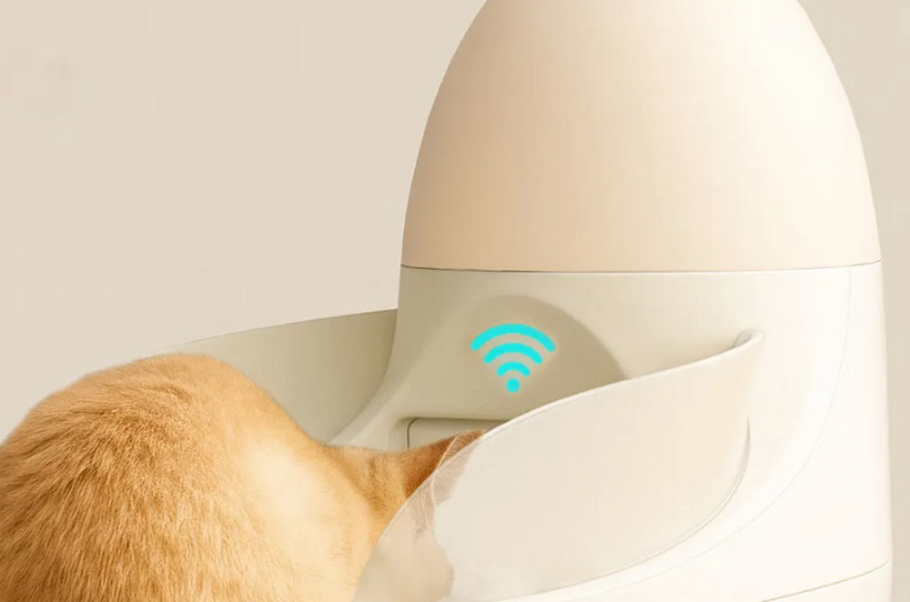 Hubplatform 發表的 Peanutcat Egg-1(見下圖)源自多年貓咪救援經驗,鎖定多貓家庭常見的肥胖與餵養失衡問題。產品採用 RFID 辨識技術,依每隻貓的健康狀況、年齡與食慾提供個別化餵食,避免偷食與過量進食,並結合紫外線消毒與長期儲糧設計,強化安全與衛生管理。