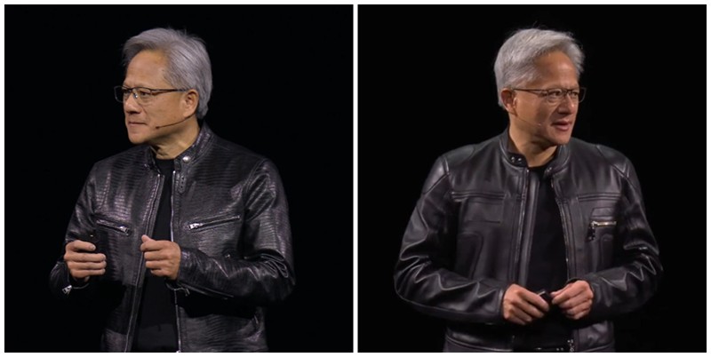 ▲ 左圖為黃仁勳在 GTC 2024 的鱷魚壓紋外套,右圖為他在 GTC 2025 的黑外套。(Source:GTC 2024/GTC 2025)