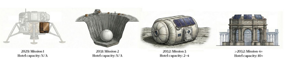 GRU Space 指出,飯店並非只是觀光設施,還是未來道路、倉儲與研究基地的起點。透過先行建立可居住空間,才能逐步擴展至更完整的月球基礎建設,並在未來複製至火星。