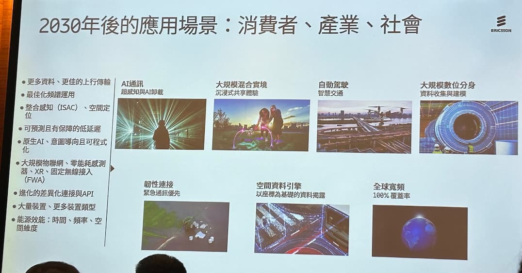 根據愛立信分享的簡報可知,6G 特色包括 AI 通訊、大規模混合實境、自動駕駛、數位分身、韌性連接、空間坐標引擎、全球寬頻(如低軌衛星)等,簡單來說,將和 AI 脫離不了關係。
