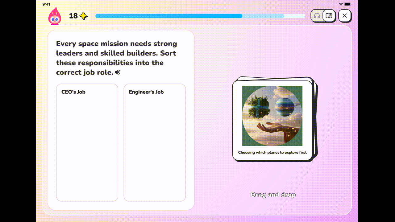 這款應用程式的學習重點包括現代教育體系常常忽視的主題,如技能設計、金融素養和創業精神。Sparkli透過AI驅動的「探險」來建構學習,指導孩子們以互動的方式探索這些主題。