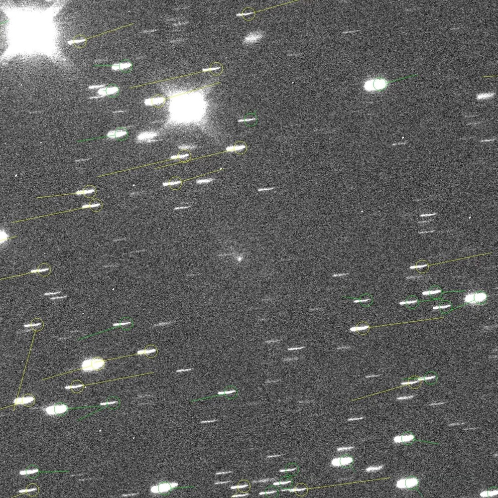 ▲ 彗星候選體 6AC4721(中心)影像,由 LCO-SAAO LO9 35 公分反射望遠鏡 14 日拍攝。(Source:Alan Hale)