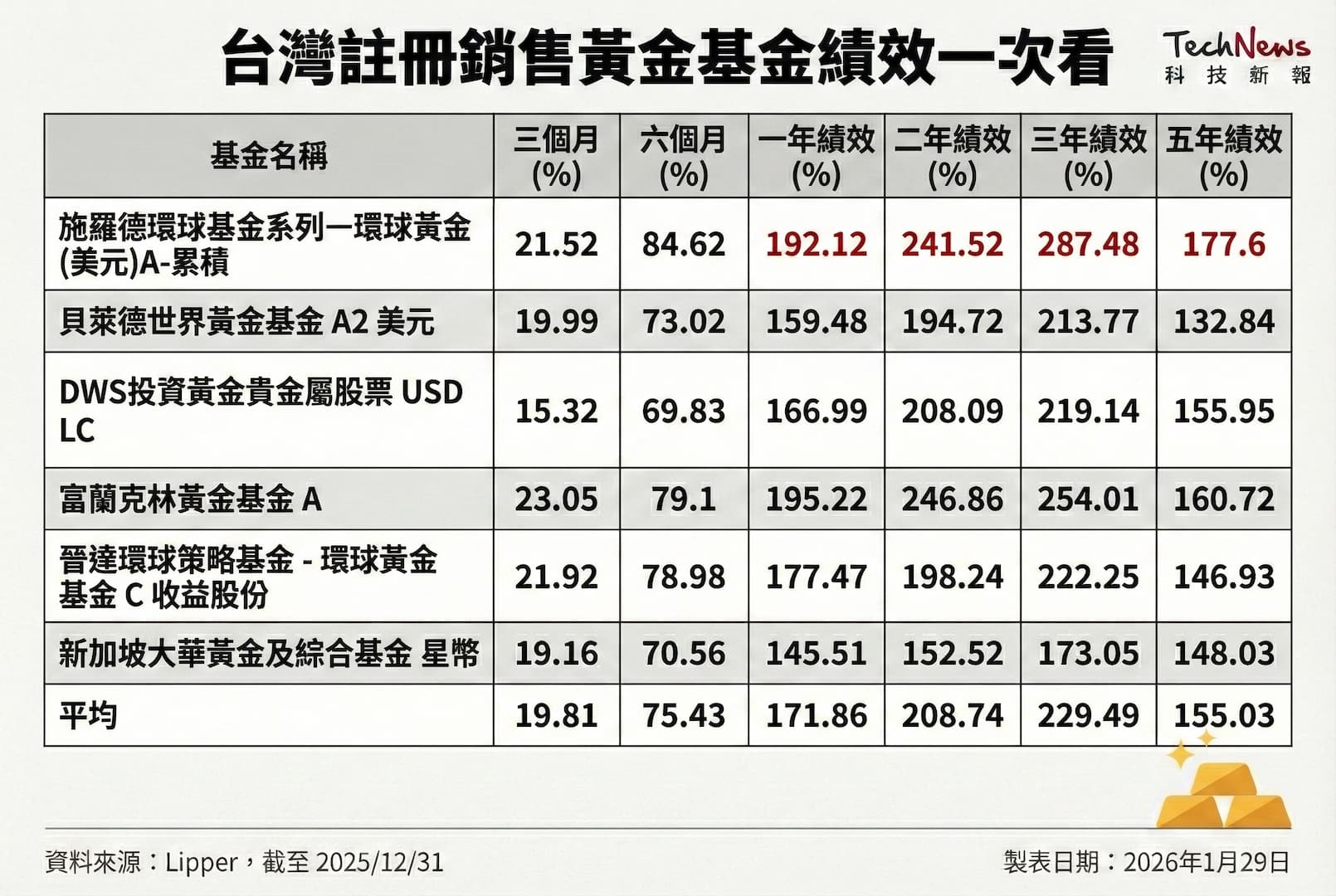 黃金價格直逼 5,600 美元!台灣註冊銷售黃金基金績效一次看