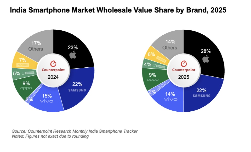 不拚量、拚單價,印手機市場高階化加速、蘋果價值市占創新高