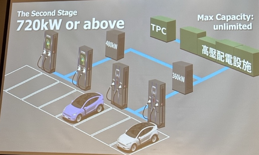 「充電站申請電力線路的時候,有兩個選擇,低壓(380V)跟高壓(22,800V),低壓電路的功率上限是 499 kW,假設這個站有兩組 360 kW 的充電槍,如果兩台車同時充電,每台車都不可能超過 250 kW。」U-POWER 創辦人 Bob(陳鵬旭)指出,電動車跟充電槍的「設備功率」再高,源頭那條「大水管」不夠粗都一樣不夠分。