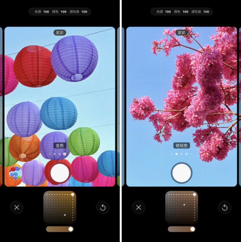 紀映光指出,iPhone 相機內建的攝影風格提供使用者色調的選擇與調整功能,非常適合在春節期間拍攝色彩鮮艷的主題。推薦使用「金色」與「琥珀色」這兩個攝影風格,並將攝影風格的調色盤往右上調整,可提升整體的明亮度和鮮艷度。