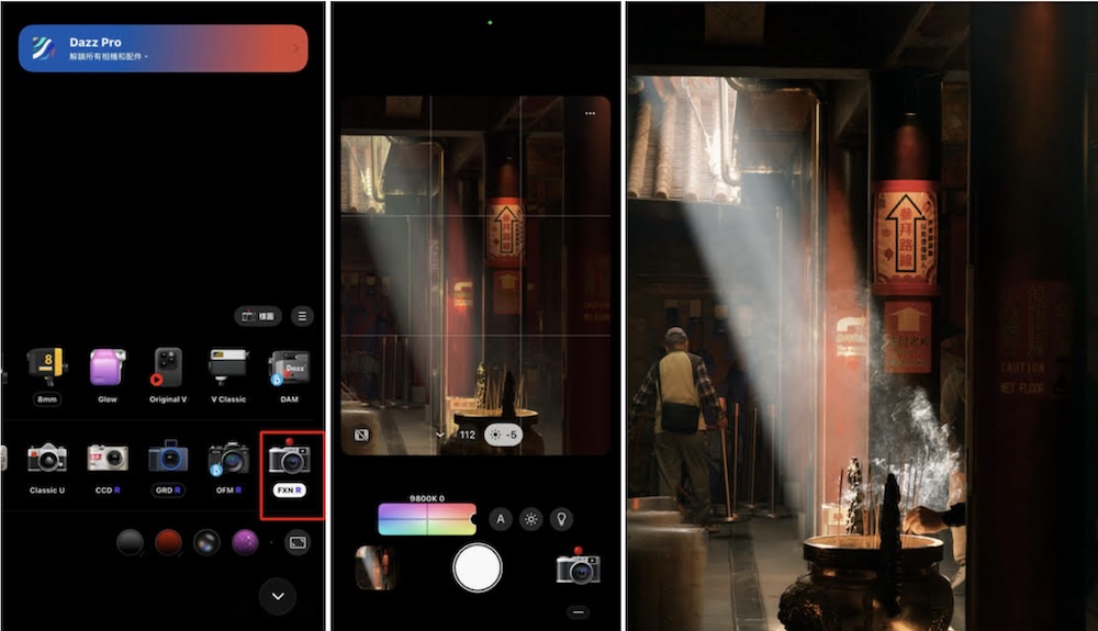 紀映光也分享,他在 Dazz 相機中最常使用的濾鏡為「FXN R」,這個濾鏡模式的色調和畫質表現都非常出色,並可調整白平衡和曝光度,讓拍攝出來的畫面呈現更鮮明的個人風格。