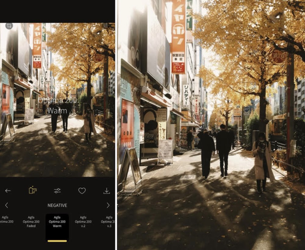 RNI Films 是一款後製調色軟體,內建多種免費色調,與 Dazz 不同的地方在於 RNI Fims 是後期調色軟體,沒辦法直接拍攝,而是適合在拍攝後進行色彩微調。RNI Films 推薦使用色調: Agfa Optima 200 與 Agfa Optima 200 Warm。