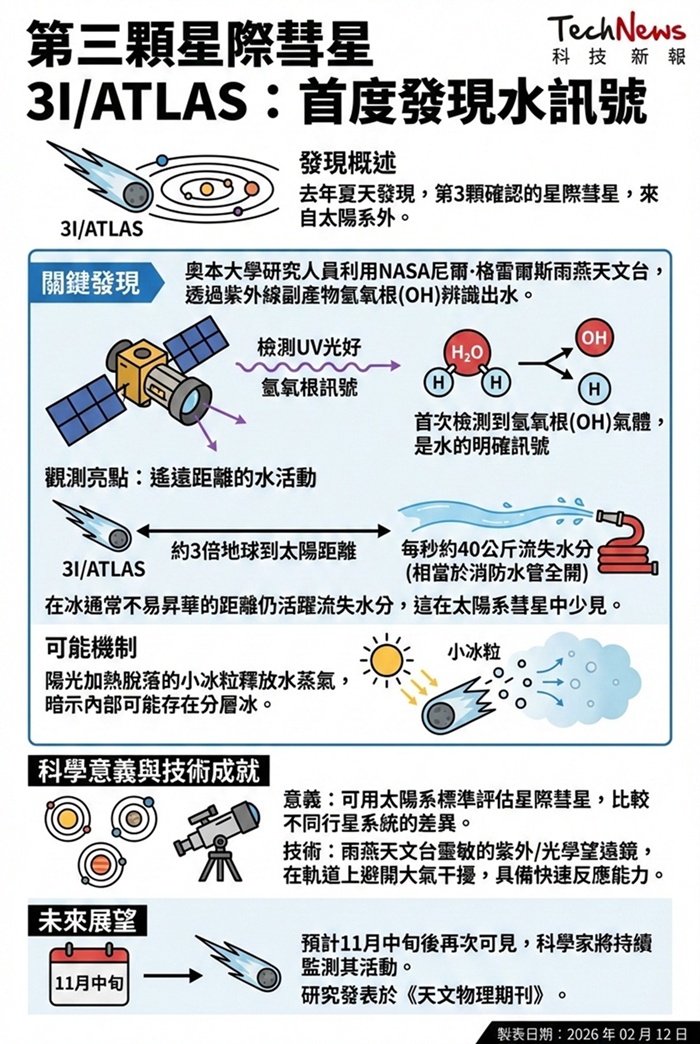 科學家研究 3I/ATLAS 新發現,NASA 偵測到明確水訊號