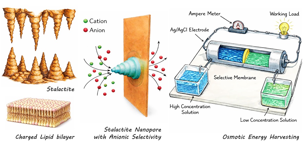 藍色能源是指利用淡水和鹽水混合時產生的潛在能量,這種能量轉換過程在河流與海洋交匯處自然發生。傳統的藍色能源系統在高效運輸離子時,往往難以保持所需的選擇性,這使得其商業化進程緩慢。研究團隊透過在奈米孔上塗覆脂質分子製成的微小氣泡,成功提高離子的流動速度,並顯著改善整體性能。