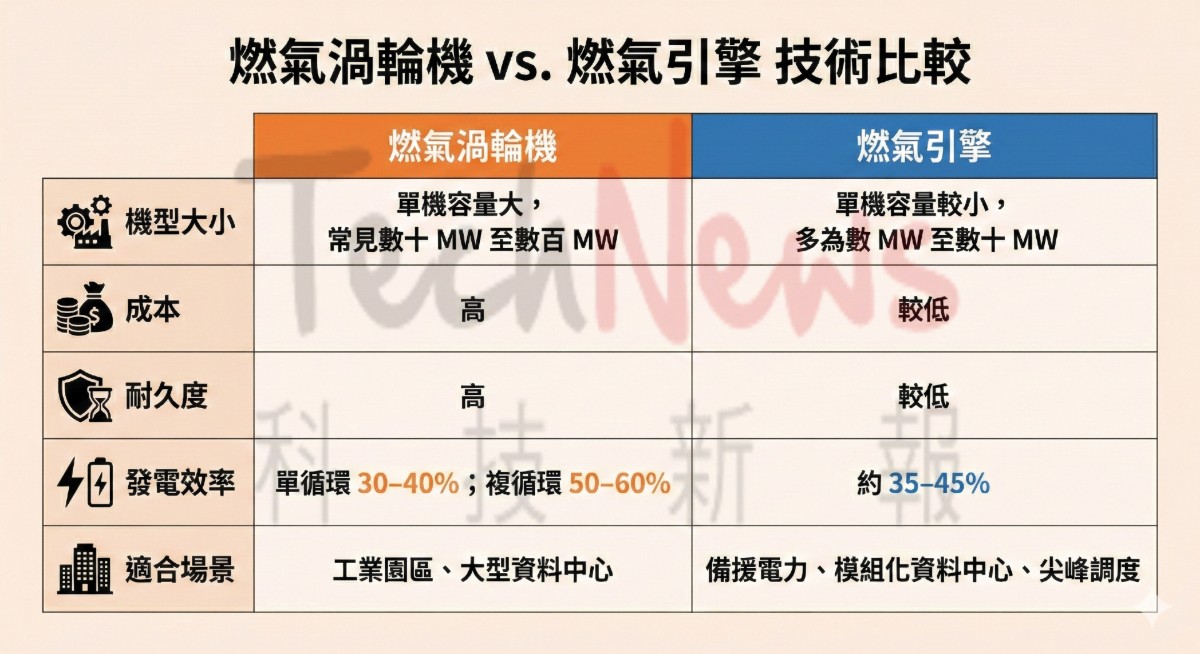 對於用電曲線劇烈波動、負載隨 AI 訓練與推論任務快速變化的資料中心而言,這種部署速度與供電可預測性,成為天然氣發電重新翻紅的核心原因。