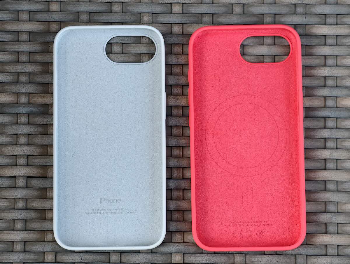 ▲ 左為 iPhone 16e 護殼、右為 iPhone 17e 護殼,iPhone 17e 護殼內側看得到 MagSafe 磁圈。
