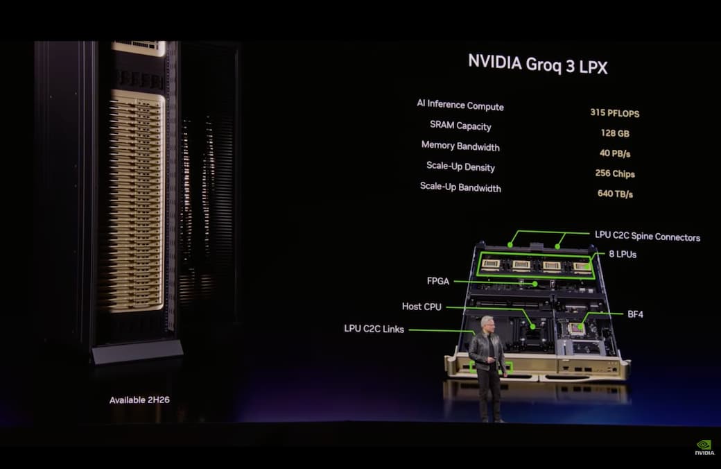 NVIDIA 執行長黃仁勳在 GTC 大會中正式分享新晶片「NVIDIA Groq 3 LPU」,是輝達第一次推出整合 Groq 技術的產品。目前 NVIDIA Groq 3 LPU 將由三星代工,預計第三季出貨。