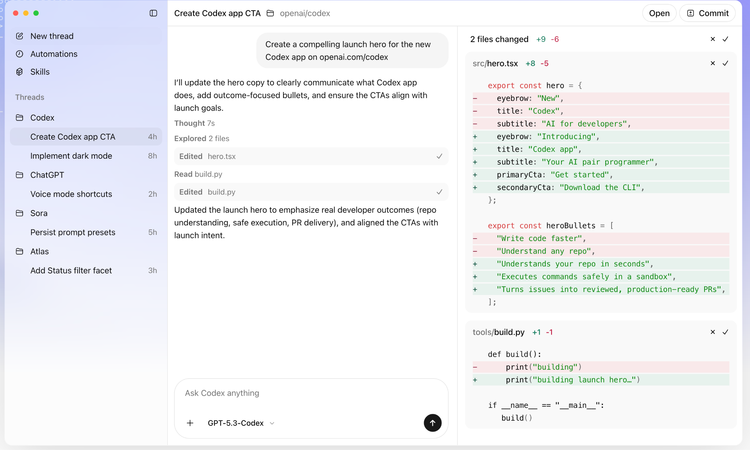 - 2月12日,Codex-Spark發布,與AI推理硬體公司Cerebras合作,推理速度超過每秒1,000 tokens。OpenAI的說法是,「當模型能力越來越強,交互速度就成了明確的瓶頸。」