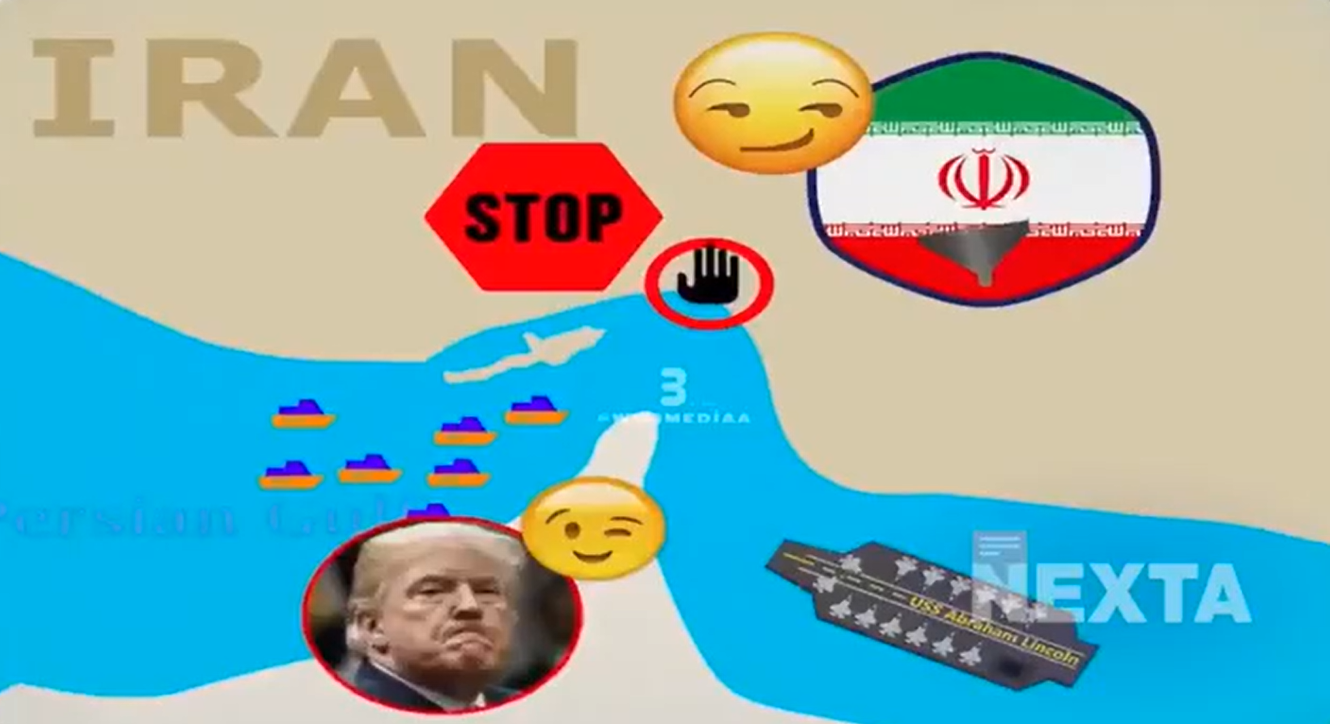 在一支由東歐媒體Nexta TV轉載的動畫影片中,生動描繪了荷莫茲海峽的封鎖過程。畫面中的川普隨著封鎖行動的推進,不斷變換著焦慮的面部表情,身旁不時冒出波斯語的對話框。更具挑釁意味的是,為了在川普的傷口上灑鹽,該影片特別展示了在其他國家船隻受困的同時,中國貨輪卻能在伊朗的注視下自由穿梭於海峽,藉此暗示讓付費的中國船隻通行使伊朗的國庫賺得盆滿缽滿。