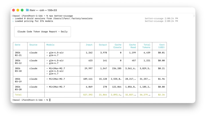 ▲ 輸入 npx better-ccusage 可查看 token 用途。