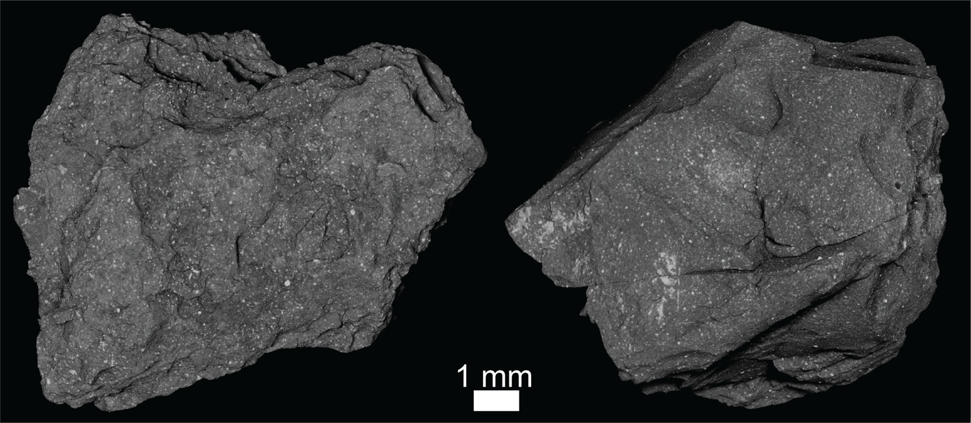▲ 下圖為貝努小行星顆粒的X光電腦斷層掃描(XCT)影像,顯示貝努樣本觀察到最常見的裂紋網絡類型。其一有廣泛且相互連通的彎曲裂紋網絡,另一種則是稀疏、筆直且扁平的裂紋。(Source:NASA)