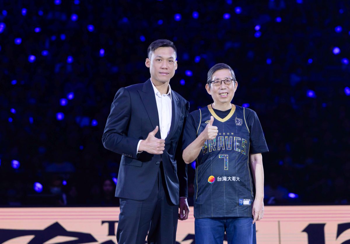 ▲富邦金控董事長蔡明興(右1)表示,林志傑(左1)在台灣籃壇的地位,如同大谷翔平在棒球界的影響力,不僅是指標性人物,更是帶動台灣籃壇熱潮與動力的活水。(Source:台灣大哥大)