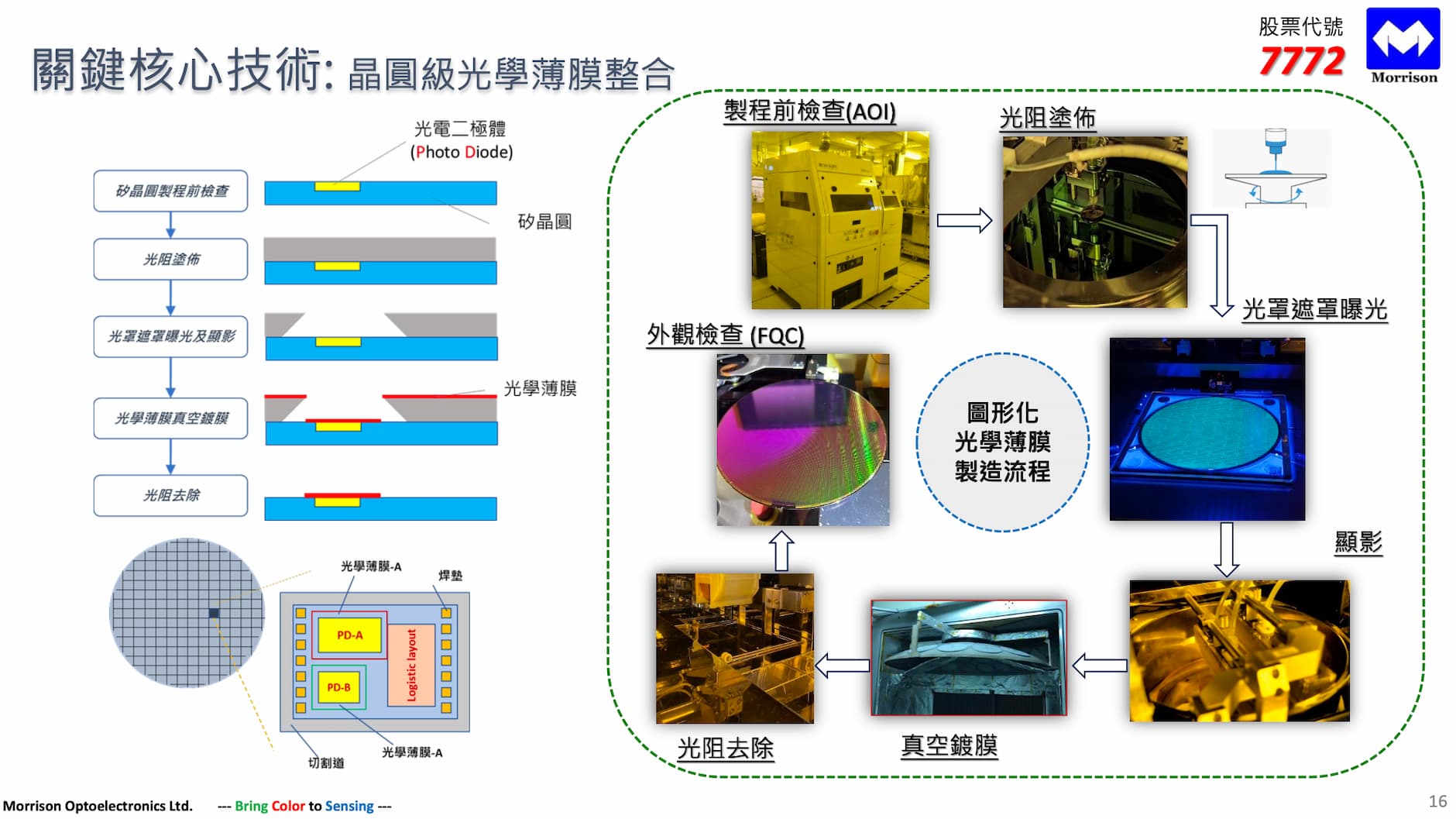 鄭偉民強調,耀穎選擇以 Mask Aligner 路徑切入光感測器代工,設備成本僅為影像感測器所需 Stepper 的十分之一以下,精準服務高階手機屏感測等高附加價值市場,未來將持續深耕 12 吋晶圓光學鍍膜、AI 眼鏡光波導鍍膜及 CPO 矽光子連接器低反射膜等新興應用。
