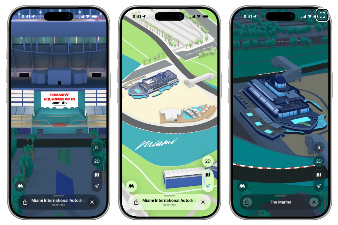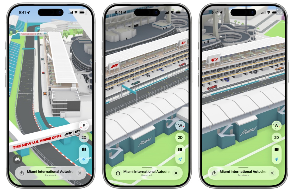 今年 F1 賽季開始,蘋果地圖推出全新沉浸式體驗,提供詳細賽道資訊和 3D 地標。蘋果從 F1 今年第一站澳洲就推出類似功能,接下來賽事都會加入新功能。