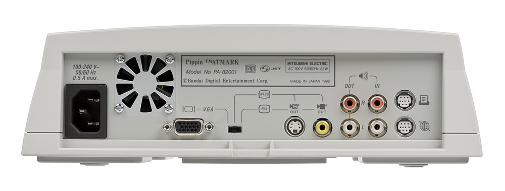 ▲ Pippin 的後方面板設有多個 A/V 輸出埠,以及印表機與數據機連接埠。(Source:Evan-Amos, Public domain, via Wikimedia Commons)