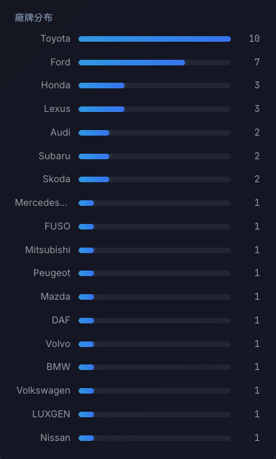 製造成本只是其中一個焦慮,當軟體成為新世代汽車產業的勝負關鍵時,Toyota 的自動駕駛能力始終沒看到什麼進展,反倒是累積了不少撞擊事件。根據 Electrify 網站統計,過去一年來,在台灣國道衝撞緩撞車事故榜單上,Toyota 還是遙遙領先。