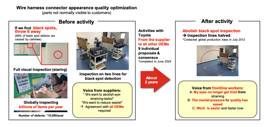 ▲ 以前電線接頭的塑膠殼如果有黑點就會被 Toyota 退貨,現在他們開始放棄這種誇張的品管要求。(Source:Toyota)