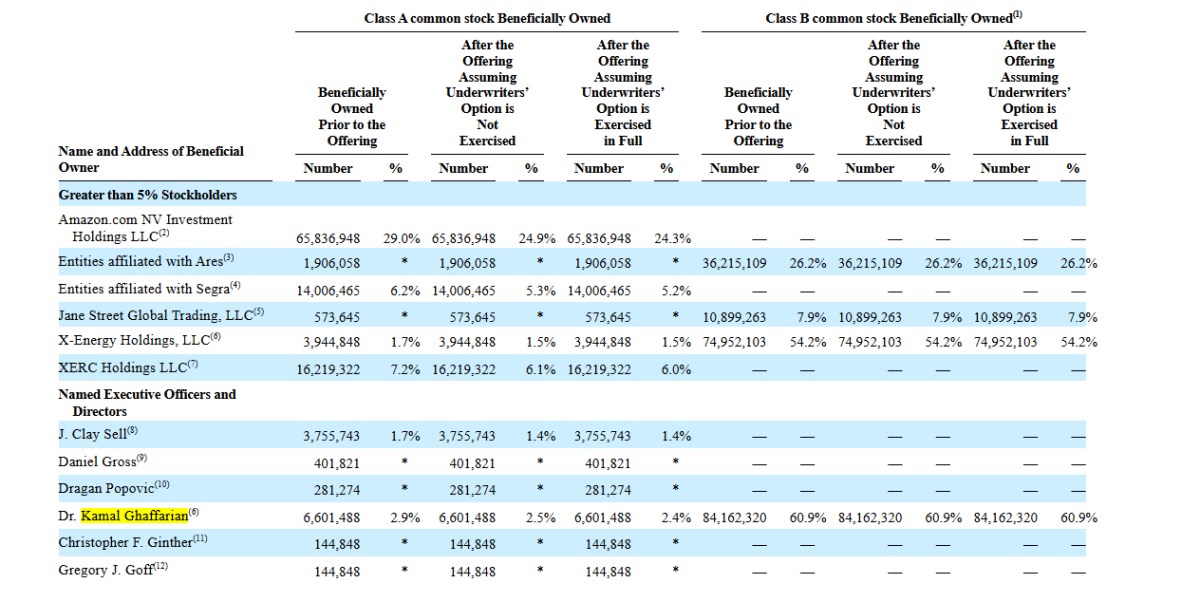根據提交美國證券交易委員會(SEC)顯示,X-Energy 背後亦有大型金融資本支持。Ares Management 持有 26.2% B 類股,而創辦人 Kamal Ghaffarian 則掌握 60.9% B 類股控制權。X-Energy 曾於 2023 年規劃透過 SPAC 與 Ares 支持的公司合併上市,估值約 20 億美元,但交易最終未完成。