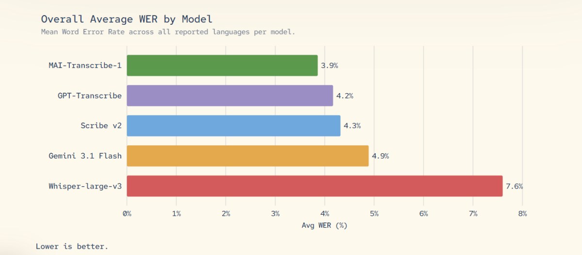 微軟推出語音辨識、語音生成與圖像生成三款模型,分別為 MAI-Transcribe-1、MAI-Voice-1 與 MAI-Image-2,效能號稱優於 OpenAI 與 Google 等同業產品。