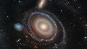 一對星系在經歷混亂合併後,在強大重力下扭曲出一個巨大、發光的恆星環,就像帶有 2 顆蛋黃的荷包蛋。 繼續閱讀..