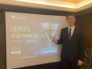 盼效仿台積電配息模式!群益台灣精選高息 ETF 再進化 作者 姚 惠茹|發布日期 2022 年 09 月 19 日 16:35 | 分類 Fintech , 半導體 , 會員專區 | edit 台股第十檔高息 ETF 誕生,群益投信今日推出「群益台灣精選高息 ETF」,基金經理人謝明志表示,存股族最愛台積電,因為台積電連續 20 年配息,而且一年配得比一高,甚至後來改成季配又都能填息,因此群益台灣精選高息 ETF 就希望可以效仿台積電的成功模式,並在 10 月 4 日開募。 繼續閱讀..
