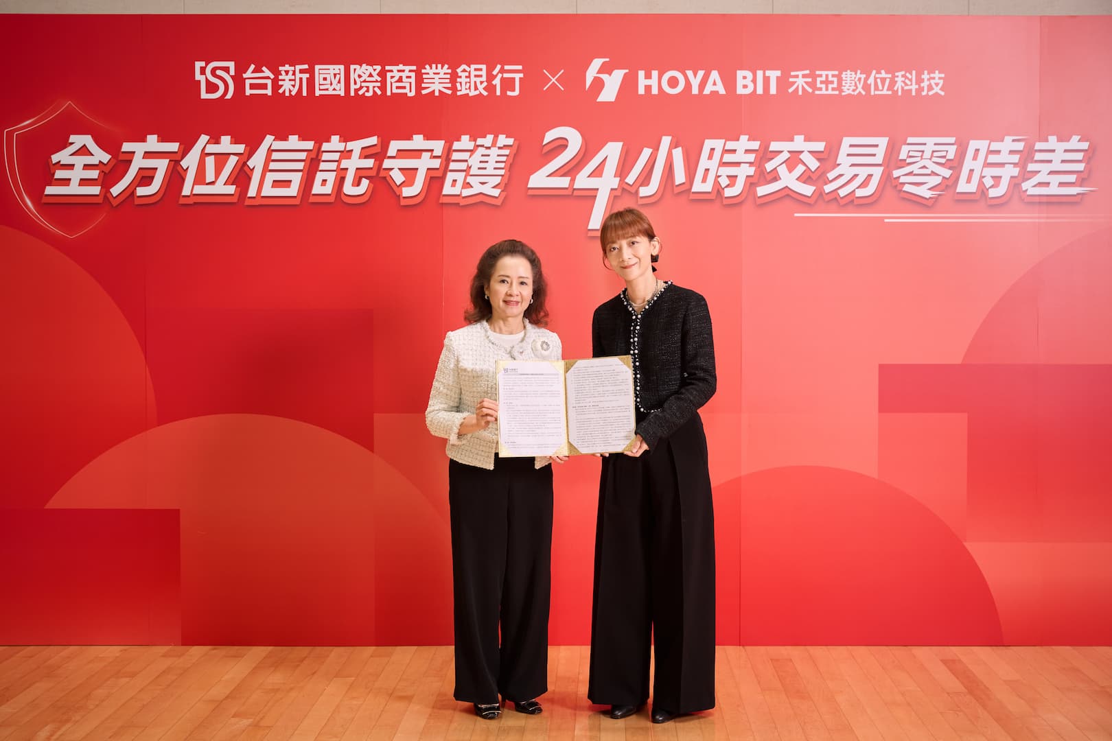 台新銀行今日宣布首度與禾亞數位科技(HOYA BIT)虛擬資產交易所合作新台幣信託業務,由台新銀行依信託契約受託管理 HOYA BIT 用戶的法定貨幣資金,當用戶依用戶契約向 HOYA BIT提交入出金申請後,即時入金、出金 24 小時內匯至用戶綁定的新台幣帳戶服務。
